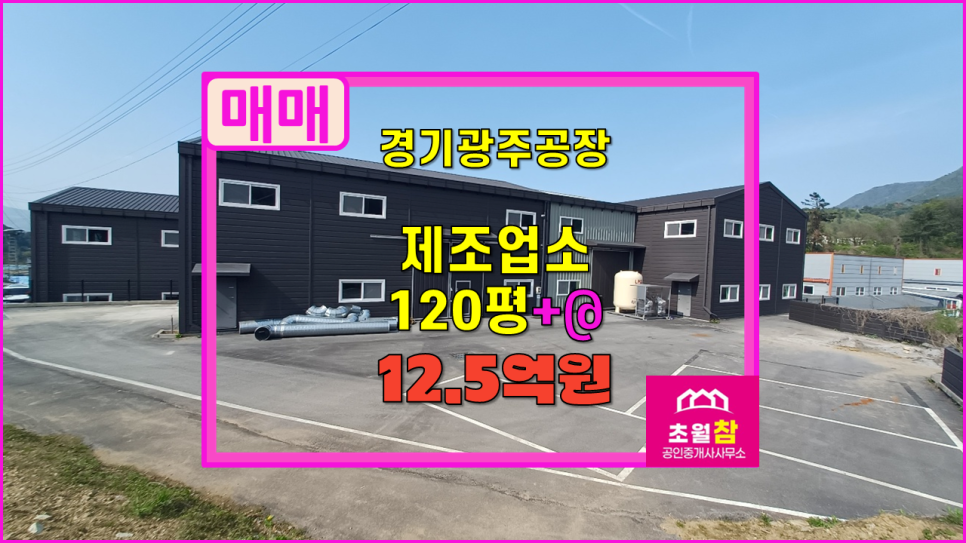 경기광주 곤지암읍 소재 식품공장 가능 120평 +@ 제조업소 매매 물건을 초월 참 부동산에서 소개해 드립니다.